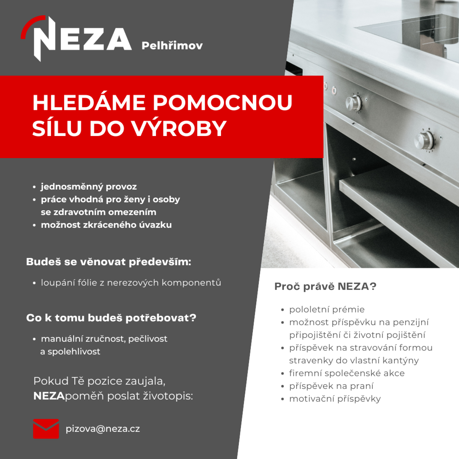 • práce vhodná pro ženy i osoby se zdravotním omezením